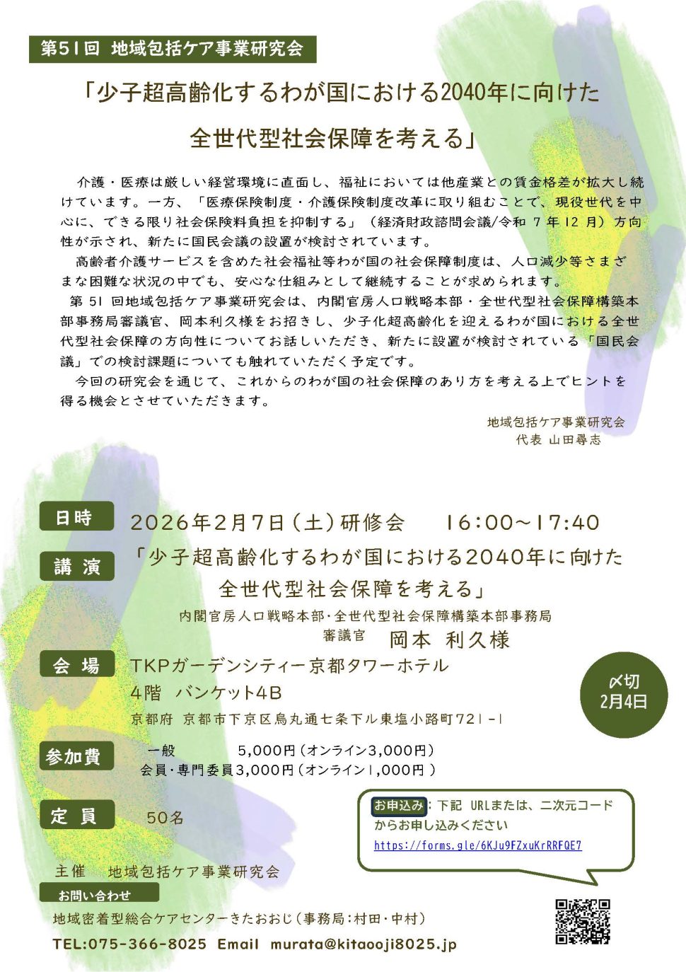 【ご案内】「第51回 地域包括ケア事業研究会」